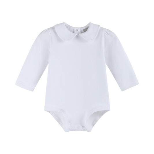White Collared Unisex Long Sleeve Bodysuit Romper