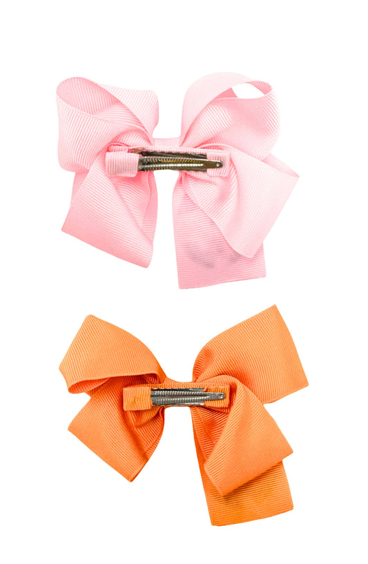 Classic Grosgrain Moonstitch Hair Bow - Medium: White w/ Orange