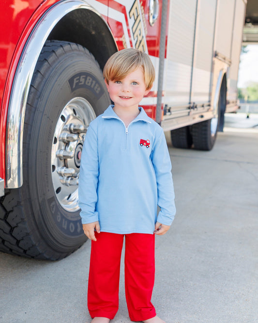 BOYS BLUE/WHITE STRIPE SMOCKED TRUCK LONG SHIRTL/S SHIRT by Delaney