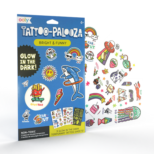 Ooly Tattoo-Palooza Glow in the Dark Temporary Tattoos - Bright & Funny - 3 Sheets