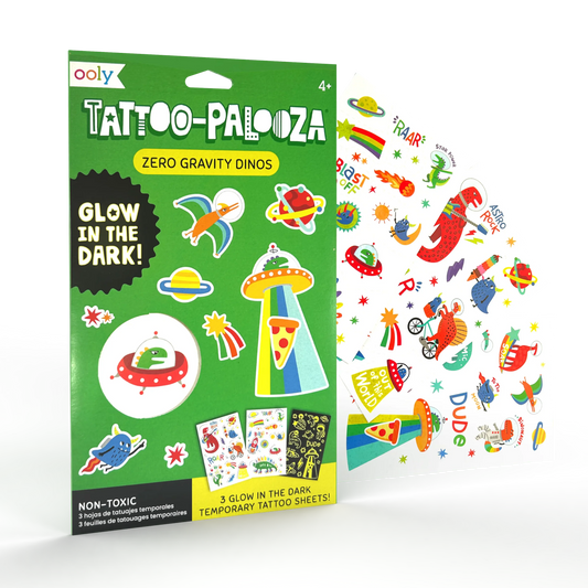 Ooly Tattoo-Palooza Glow in the Dark Temporary Tattoos - Zero Gravity Dinos - 3 Sheets