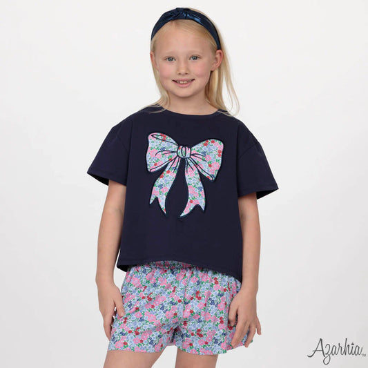 Azarhia London Floral Bow Navy Boxy SS Shirt