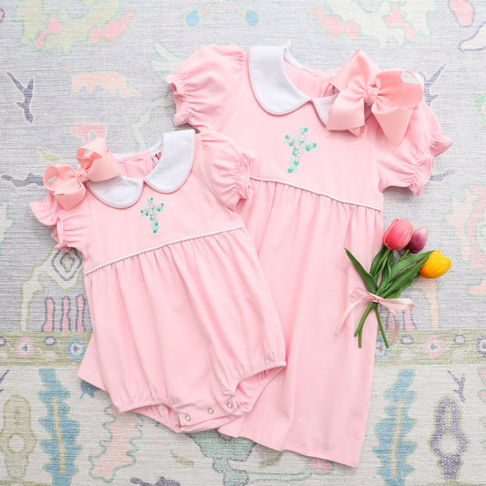 Rylee Faith Pink Smocked Church Christ Bishop Christening Bow Baby Girl Romper