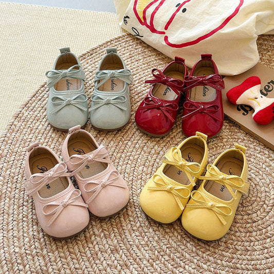 Girls Glossy Bow Dress Flats Patent Leather Mary Jane Shoes, Pink