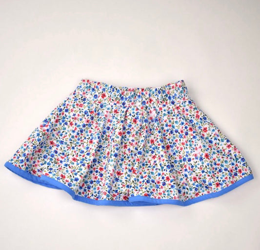 GIRLS FALL FLORAL SKIRT W/ BOWS & BLUE KNIT LS RUFFLE FLORAL COLLAR by Delaney