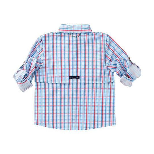 PRODOH Long Sleeve Founders Kids Fishing Shirt Patriotic Plaid