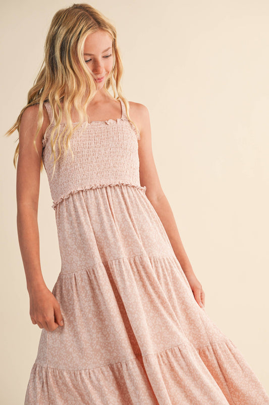 TWEEN GIRLS KIDS SMOCKED TIERED MIDI DRESS